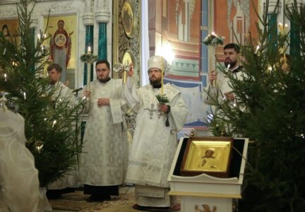 В канун праздника Рождества Христова Преосвященнейший Дионисий, епископ Россошанский и Острогожский, совершил всенощное бдение в Ильинском кафедральном соборе