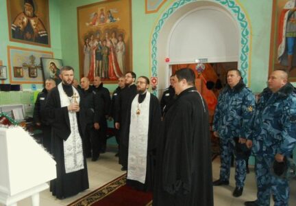 За богослужением присутствовало начальство колонии, сотрудники учреждения и члены православной общины Никольского храма.