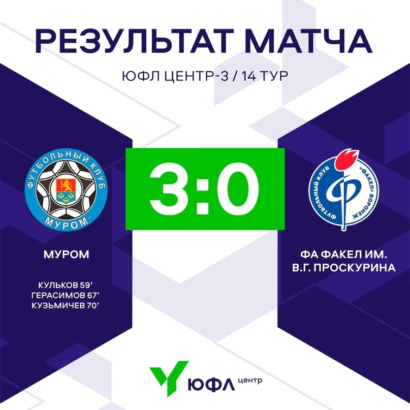 В воскресенье, 25 июня, команды Академии "Факел" им. В.Г.Проскурина провели гостевые матчи 14 тура первенства зоны "Центр" ЮФЛ - 2023 против футбольного клуба "Муром".