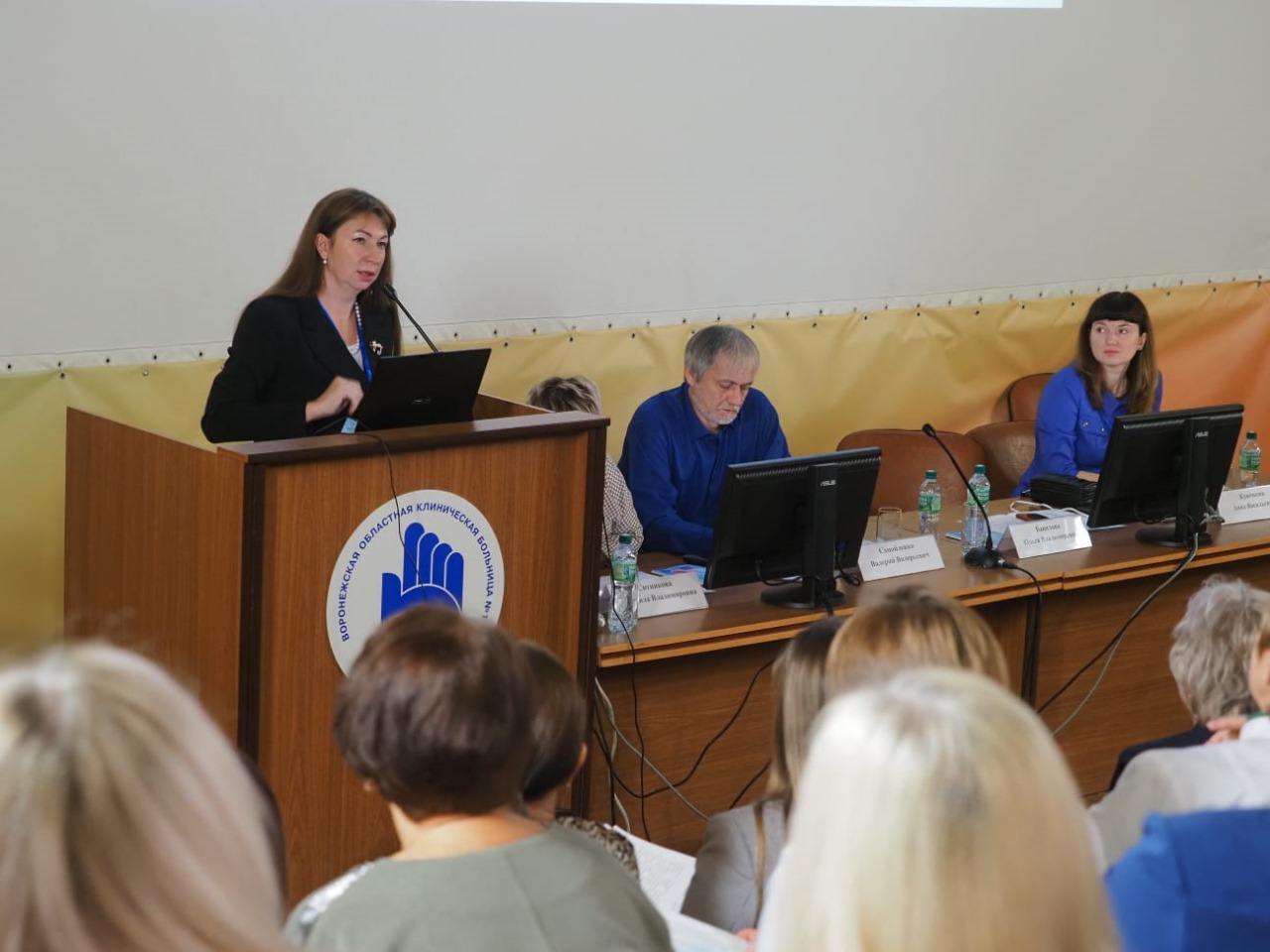 В отдельном зале проходила специализированная секция для медицинских сестер, посвященная организации работы хирургического стационара. С докладами выступили сотрудники кафедры организации сестринского дела ВГМУ им. Н.Н. Бурденко (Крючкова А.В., Лямзина Е.В., Семынина Н.М.).