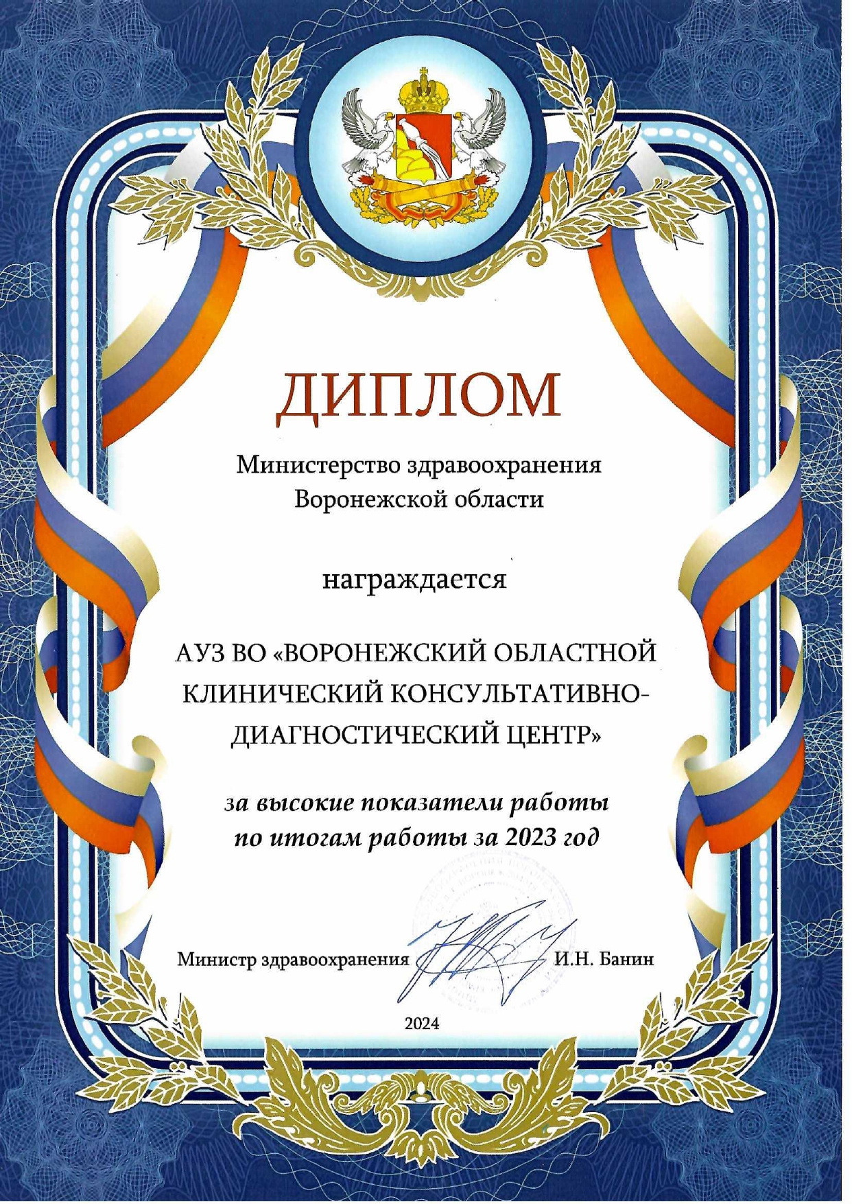 По итогам работы в 2023 году АУЗ ВО «ВОККДЦ» отмечен дипломом Министерства здравоохранения Воронежской области за высокие показатели работы.Последние новости