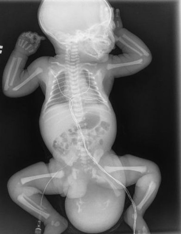 Изначально в больницу поступила женщина на 38-й неделе беременности. На обследовании обнаружилось, что у плода есть врождённый порок — крестцово-копчиковая тератома. Это опухоль с неоднородной структурой. В итоге женщине провели кесарево сечение.