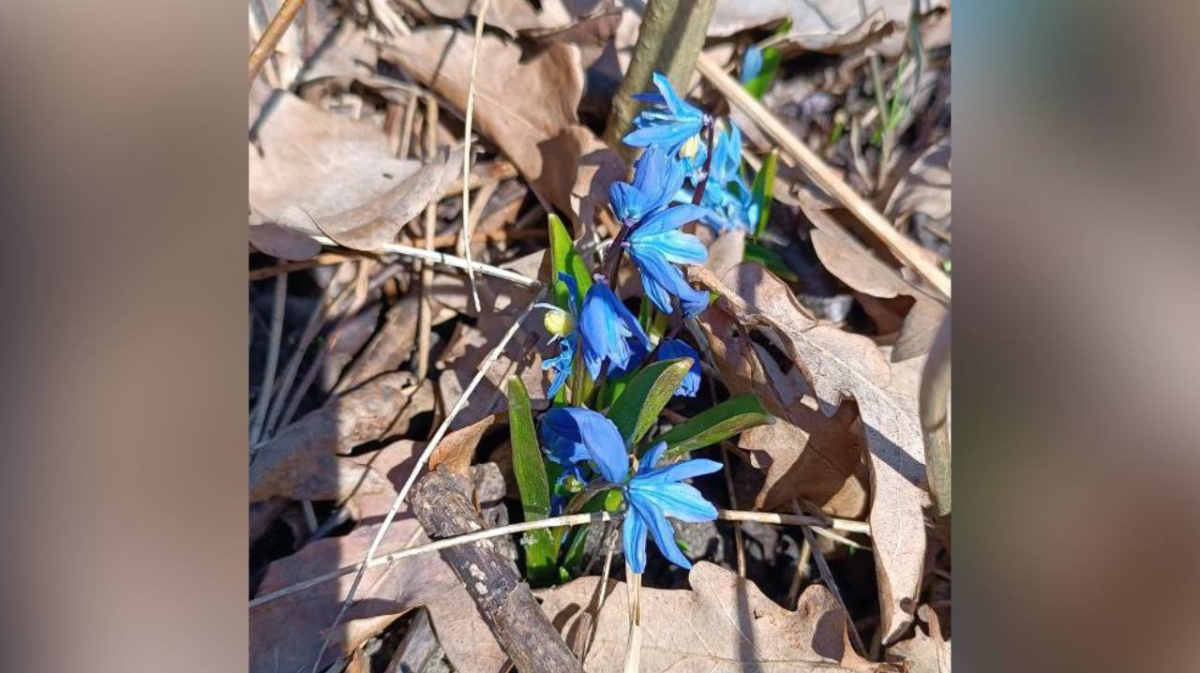 Пролески в санатории имени Горького показали на фото. Первые весенние пролески распустились в заснеженном лесу в санатории имени Горького.
