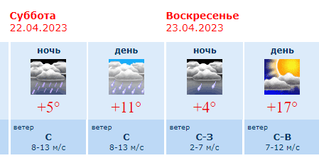 Прогноз погоды в Воронеже на субботу, 22 апреля