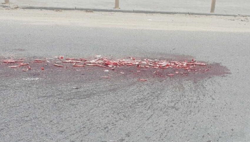 Фотографии, на которых показаны пятна крови на асфальте и осколки колб, опубликовали в социальных сетях очевидцы.