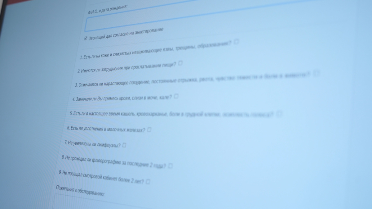 Занимает это всего несколько минут – в тесте 9 вопросов, например, есть ли на коже язвы и царапины, которые долго не заживают или имеются ли затруднения при проглатывании пищи. Если хотя бы один ответ положительный – пациента приглашают на осмотр. За 3 месяца анкету прошли полторы тысячи воронежцев, обследование потребовалось почти половине. Рак нашли у трёх, а ещё у нескольких десятков – доброкачественные образования. В ближайшее время анкету разместят на сайте поликлиники, а пока тест можно пройти только по телефону.
