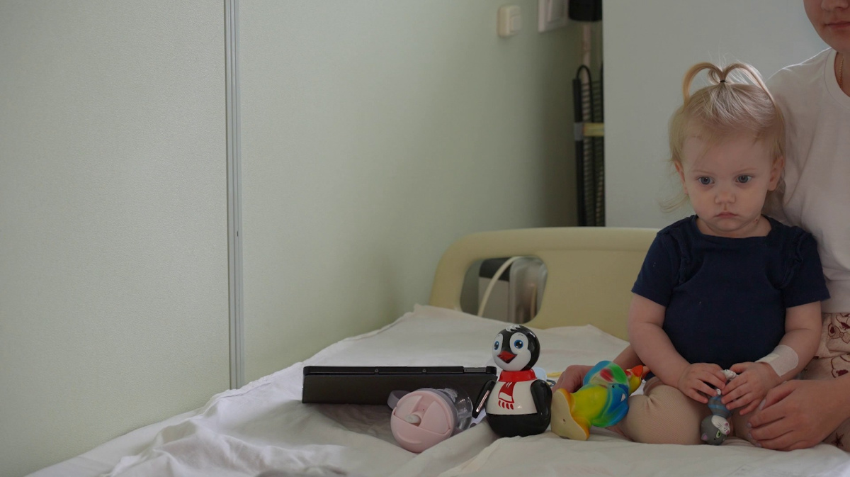 Маленькая Ева перебирает любимые игрушки и немного капризничает. Мама говорит, малышка просто скучает без общения и движения в небольшой палате. В это сложно поверить, но ещё пять дней назад у ребёнка была сложнейшая операция на открытом сердце. Врачам удалось то, с чем не справилась природа. После устранения врождённой патологии, у девочки есть все шансы на полноценную жизнь.