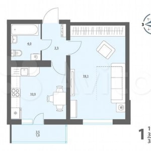 - Общая площадь: 38.3 м²