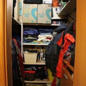 9. В холле гардеробная с полками под хранение одежды и обуви