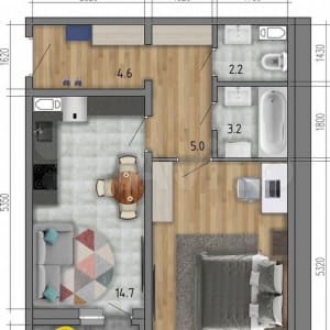 Инфраструктура в шаговой доступности: детские сады, школа, поликлиника, магазины, торговый центр, остановки общественного транспорта, банкоматы, МФЦ, детские спортивные площадки для командных видов спорта, тренажерный зал