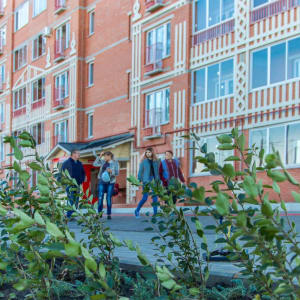 На территории жилого комплекса предусмотрена высадка зеленых насаждений, обустройство мини-сквера, вертикальное озеленение фасадов.