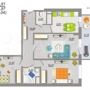 В квартире большая лоджия, которая выходит из кухни в комнату, широкие подоконники для любителей разведения цветов.